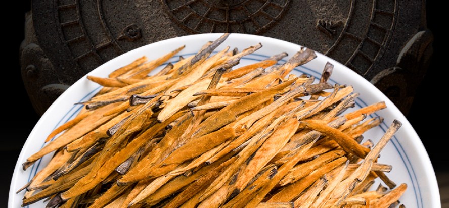 Looking for a subtle black tea? Then go for Jin Jun Mei (Golden Eyebrows) black tea. This tea is in fact a higher grade Lapsang Souchong. The name ‘Golden Eyebrows’ refers to the golden yellow/orange colour of the dry leaves. Like Huang Shan Mao Feng green teas, the leaves of Jin Jun Mei are covered with furry hairs. Due to the stronger processing of black tea, the furry hairs turn into a golden color, which results in a beautiful appearance.