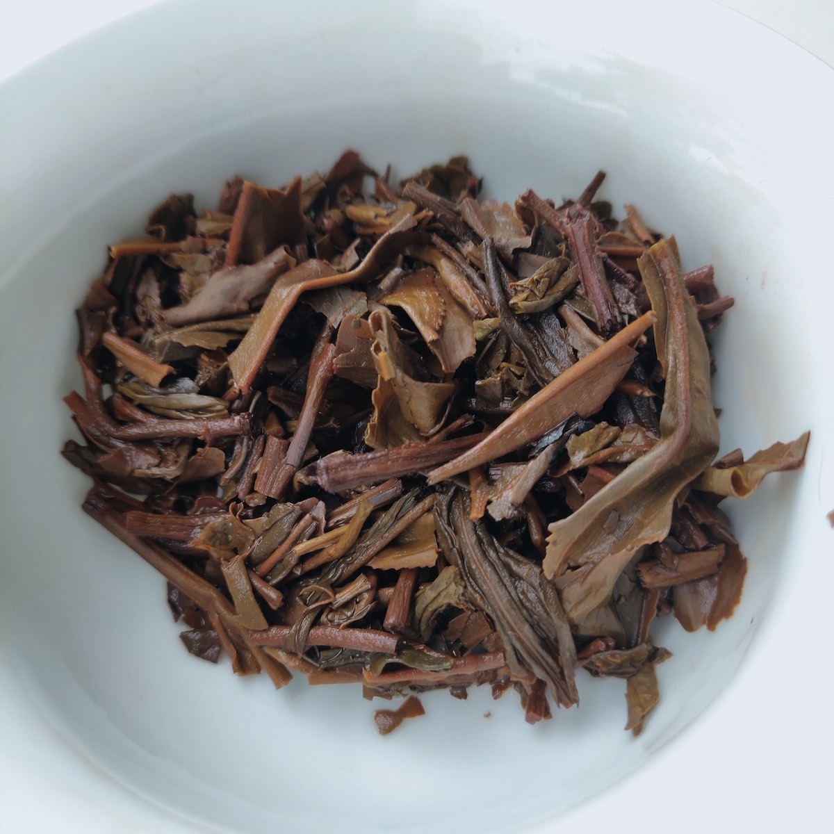 We steep 6 grams of tea in a small 120 ml gaiwan. The compression tightness of this cake was average. It was fairly easy to pry off a piece from the cake, but it was still tight enough to keep the cake together after so many years. What we often see with loosely compressed teas, is that they tend to become too loose over time, and many leaves start to come off.
