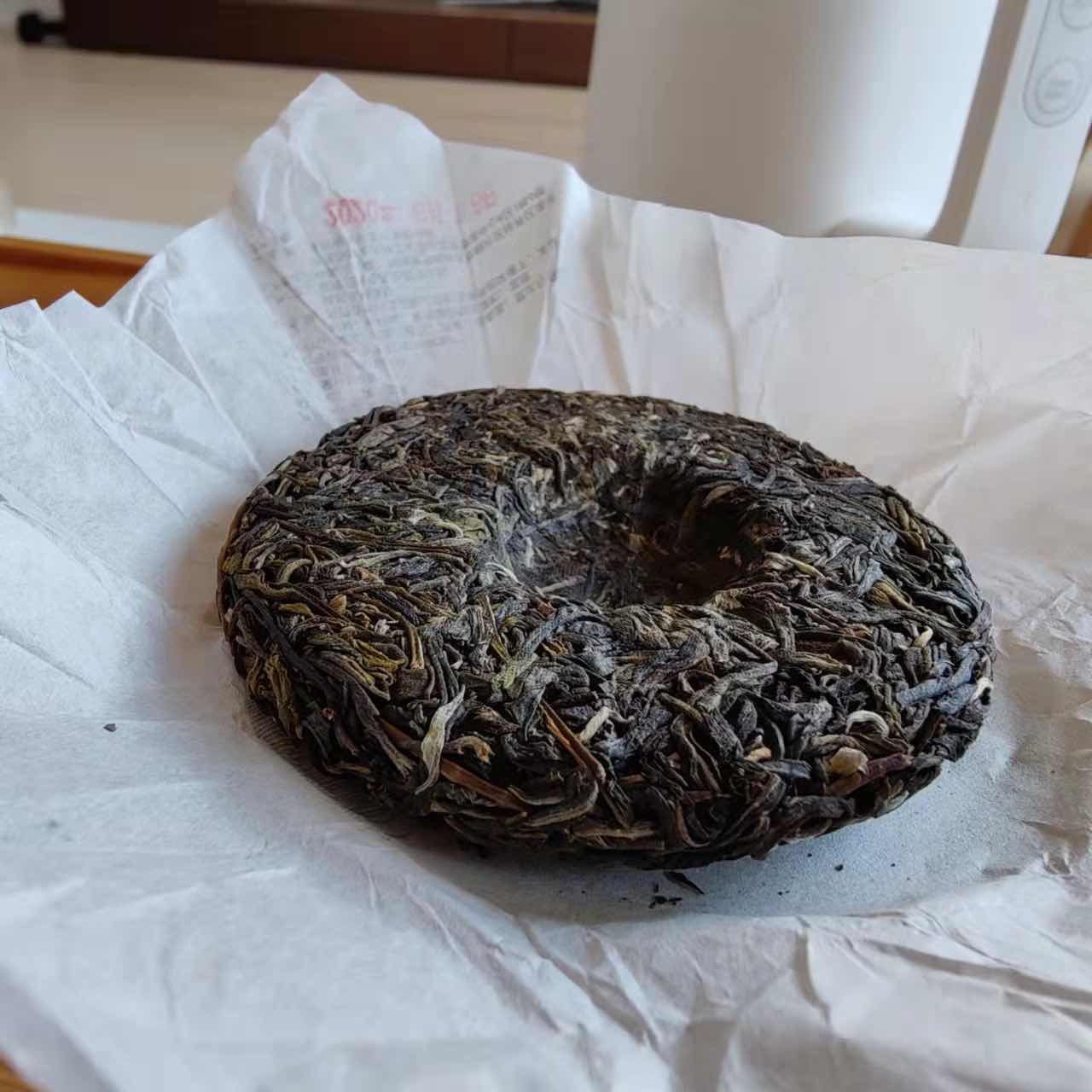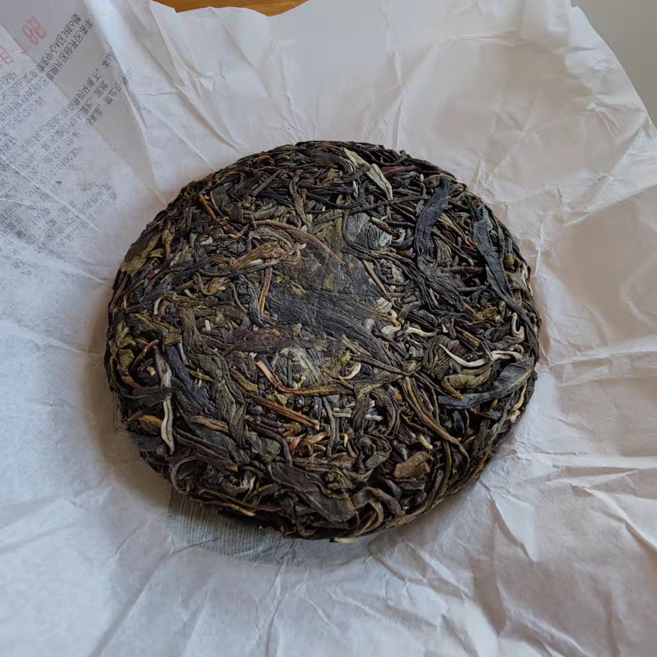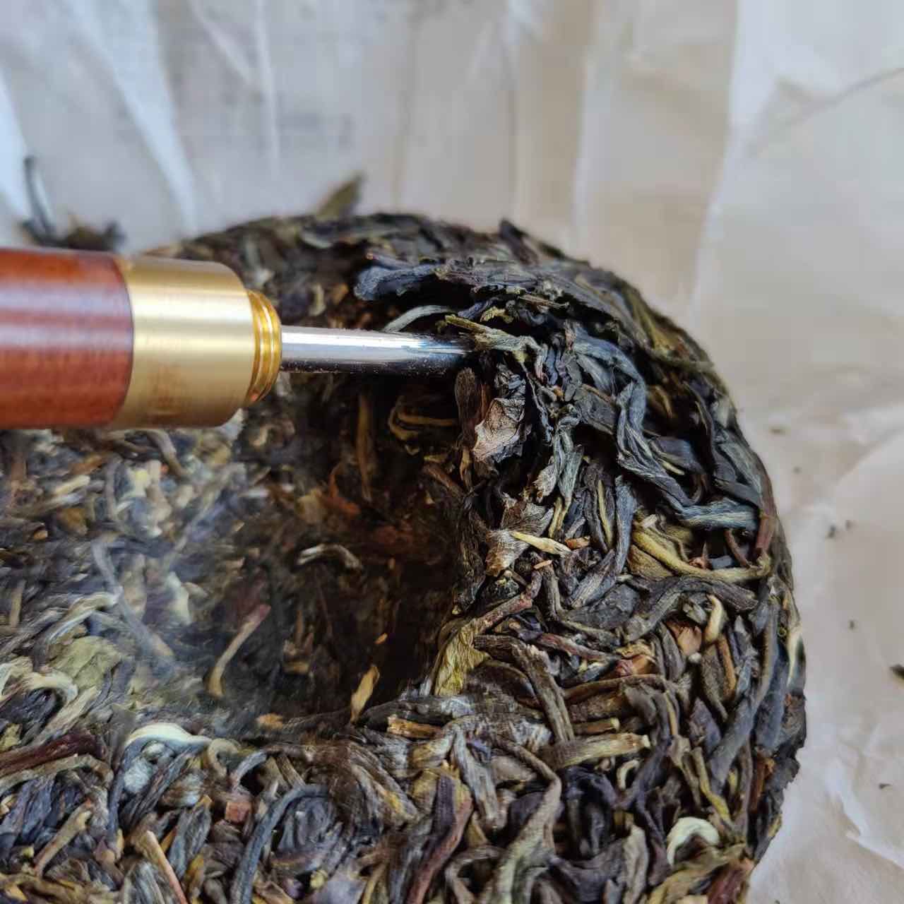 The leaves on the outer parts are easy to pry with a tea knife, yet not loose enough to loosen up with your hands. The center is somewhat tighter. In fact the tightness in the center is close to a tuocha. As a result, the aging of this cake may not be uniform, which could make it interesting to revisit after a few years.