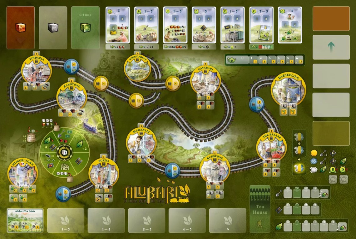 In this game (A Nice Cup of Tea) you cultivate and manage your own tea estates, you support building the Darjeelling-Himalaya railway from Siliguri to the Summit of Ghum. The farmer that contributed the most to the completed railway wins the game.