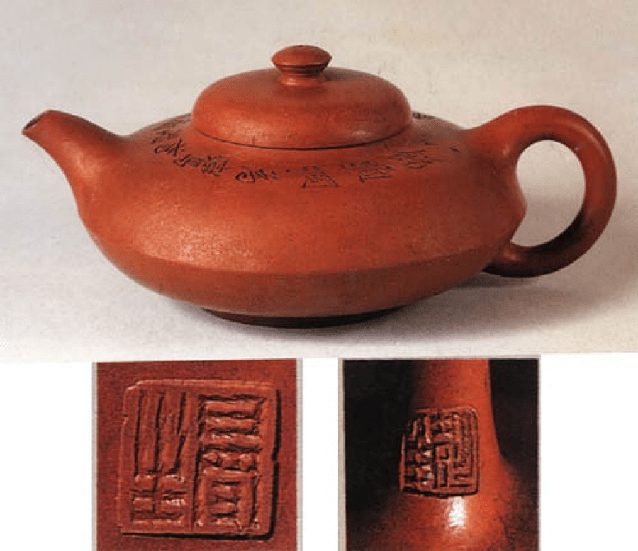 A Man Sheng teapot that we can appreciate today usually has the seal inscription of the “A Man Tuo Shi” (阿曼陀室) at the bottom of the teapot, and the seal carving of “Peng Nian” (彭年) under the handle. “A Man Tuo Shi” was the name Man Sheng called his study where he designed the teapots, and “Peng Nian” naturally refers to the craft master Yang Peng Nian.