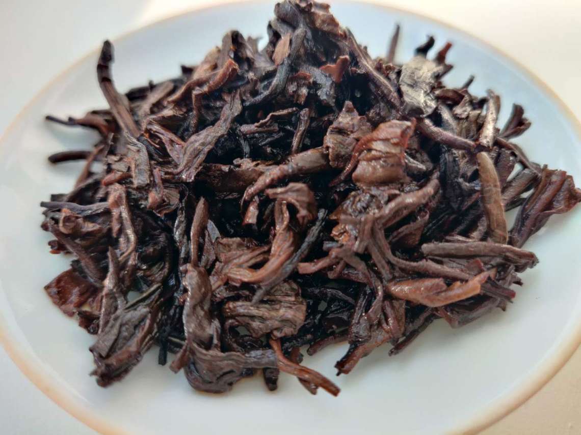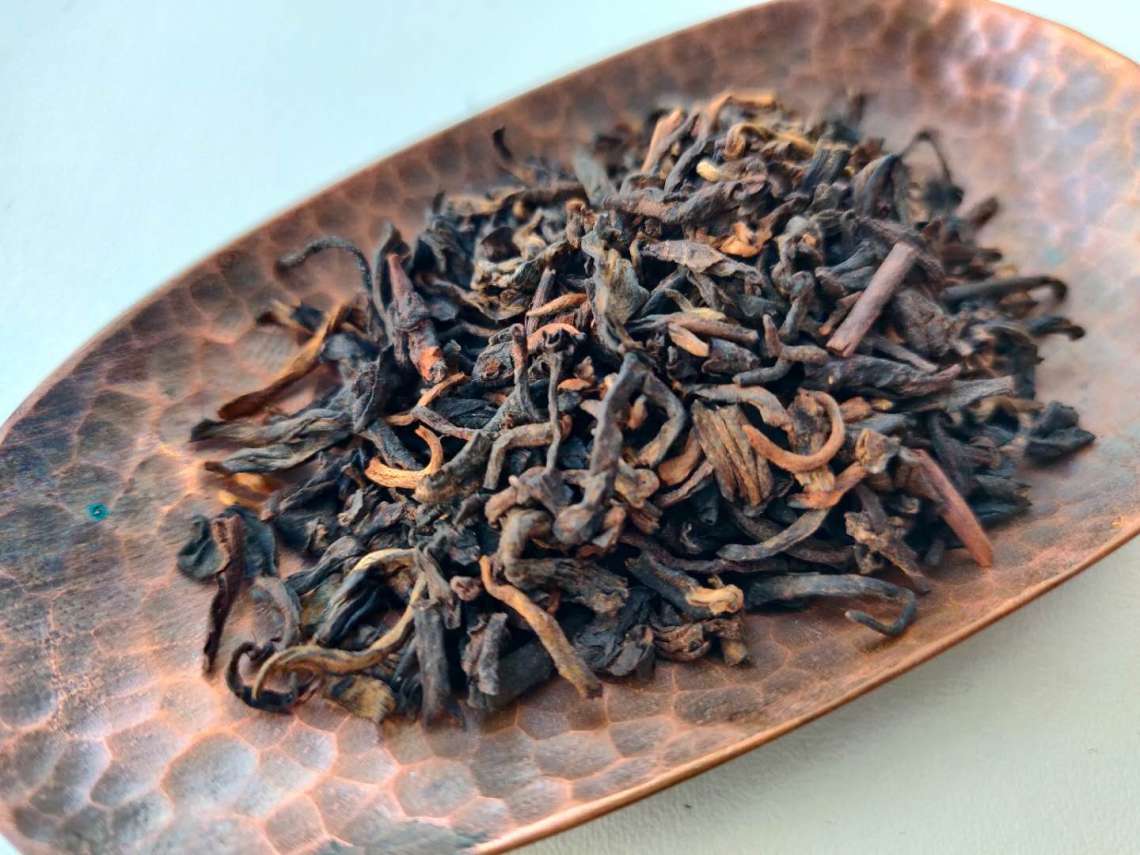 Compared to a more strongly fermented ripe, this ripe pu erh is a more moderate body. It’s definitely less thick, but still very smooth. It’s also less earthy, more delicate, and its intensity hangs between that of an average ripe pu erh and a black tea. Here’s a pic of the wet leaves: