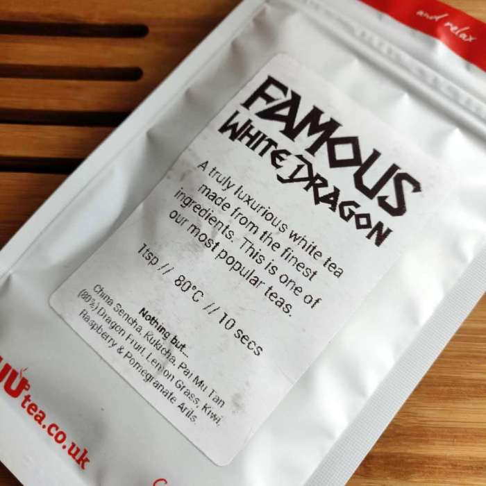 Wonderful blend of white tea and exotic fruits. Combining the soft and light taste of this white tea with fruits results in a beautifully balanced aroma. The fruit aroma is noticeably there, but it doesn’t overwhelm.