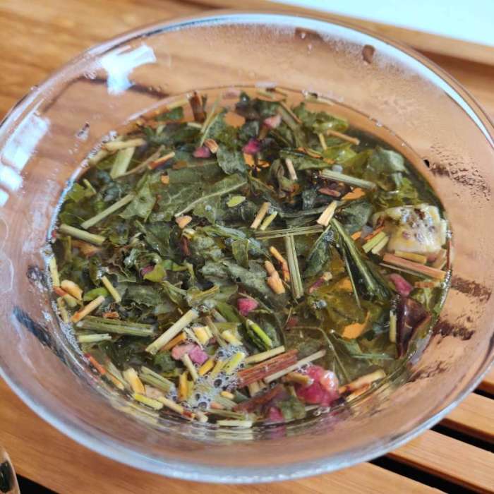 When smelling the leaves I was afraid that the lemon grass would overwhelm, but when brewed the balance was spot on. Easily got 4 brews out of it in a gaiwan!